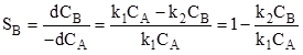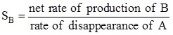 Here B is the desired product. The selectivity of product B with respect to reactant A is can be expressed as