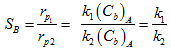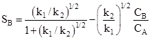 ) and assuming equal effective diffusivities, the selectivity of B can be obtained as