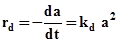 The kd is the sintering decay constant. Integration with a=1 at time t=0 gives