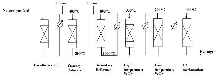 Fig. 2. Schematic flow diagram for hydrogen production from steam reforming of natural gas