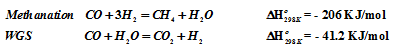 This reaction is always accompanied with methanation and water gas shift reaction.