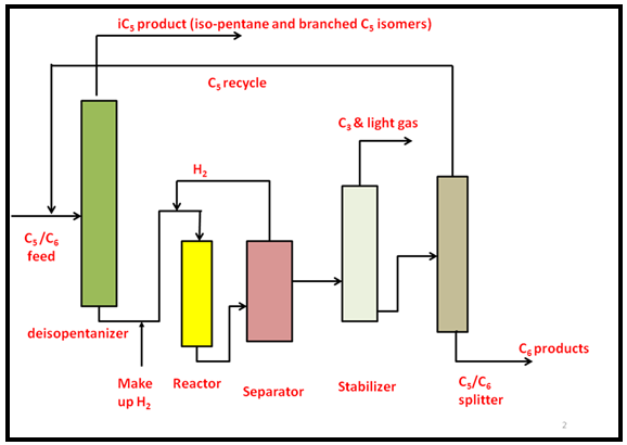 Fig. 3. Process flow diagram for isomerization of C5 and C6 alkanes to branched products