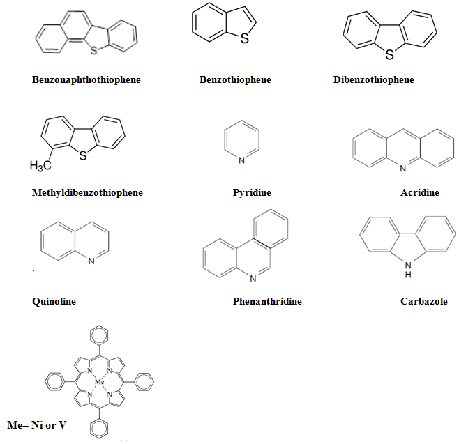 Fig. 4. Examples of sulfur, nitrogen and metal containing compounds in petroleum crude