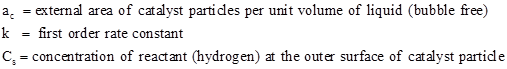 For first order irreversible catalytic reaction, the surface reaction rate per unit volume of bubble free slurry may be written as