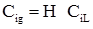 H2 pressure decreases across the gas film due to film diffusional resistance. At the gas liquid interface, a concentration of hydrogen in the liquid is determined in accordance with Henrys law. If equilibrium exists at the bubble-liquid interface Cig and CiL are related as