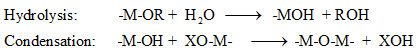 The metal alkoxides are hydrolysed in alcohol solution containing a controlled amount of water. The sol gel chemistry can be represented by following two reactions: