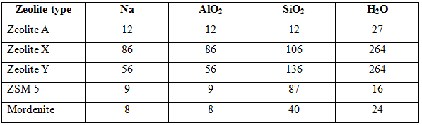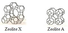 Aluminosilicates are formed by polymerization of SiO4 and AlO4 tetrahedra to form sheet like polyhedral. The polyhedra forms cubes, hexagonal prisms and truncated octahedral. These 3D tertiary building blocks in turn are arranged regularly to form a superstructure inside which pores and supercage exists. Each supercage is characterized by a window size aperture which can block entry of sufficiently large molecules. This is known as sieve effect. The zeolite structures have pores oriented in one, two or three directions leading to 1D, 2D, 3D structures. Structures of zeolite X and A is shown in Fig 1.
