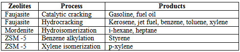 Table 2. Commercial catalytic processes using zeolite catalysts