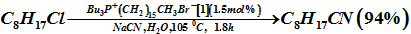 Displacement reaction of 1-chloroctane with aqueous sodium cyanide is accelerated many thousand-fold by the addition of hexa-decyltributyl-phosphonium bromide as phase-transfer catalyst. Tremendous reactivity enhancement occurs due to generation of quaternary phosphonium cyanide, which makes cyanide anion organic soluble and sufficiently nucleophilic. In the absence of hexa-decyltributyl-phosphonium bromide phase transfer catalyst, no reaction occurs.