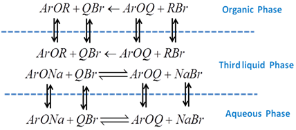 Etherification reaction of aqueous sodium onitrophenoxide with 1-bromoctane can be carried out under third-liquid phase-transfer catalytic conditions. The reaction scheme shown in Fig 4 is proposed by Lin et al. [2].