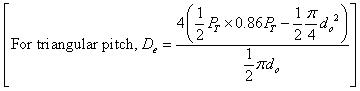 Equivalent diameter for the shell side: (for square pitch)
