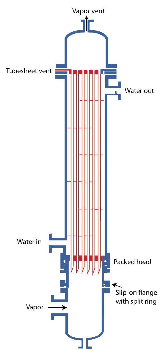 Figure 1.7 . Downflow vertical condenser with condensation inside tube [5] . |