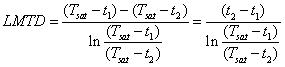 The condensation occurs almost at a fixed temperature (isothermally) at constant pressure for a pure saturated vapor compound. The logarithmic mean temperature difference can be used for condenser design. No correction factor for multiple pass condensers is required . The logarithmic mean temperature difference: