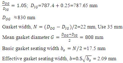 Gasket factor m =3.75, minimum design seating stress Y= 5.35 kgf/mm2 (for flat iron jacketed, asbestos fill) ( Table 2.4 )