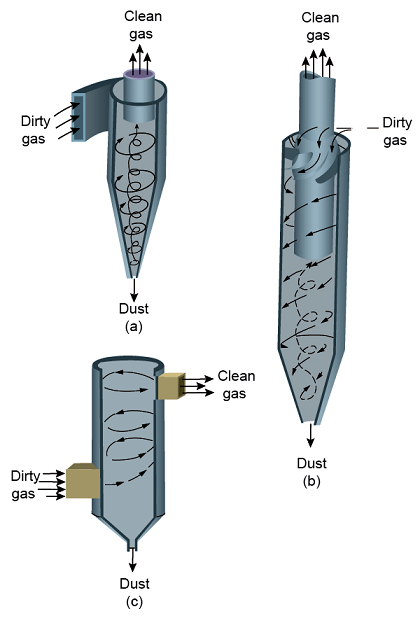 Similarly, cyclone efficiency will decrease with increases in the parameters such as gas viscosity; cyclone body diameter; gas exit diameter; gas inlet duct area; gas density; leakage of air into the dust outlet.