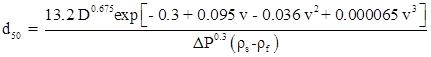 If the hydro cyclone of above geometry has to be designed, then d50 can be estimated as: