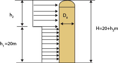 h1 – height of the bottom part of the vessel equal to or less than 20 m