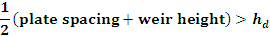 of the clear liquid density. Therefore, half of the sum of the plate spacing and weir height should be greater than the downcomer backup.