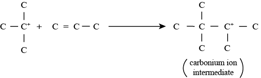 • Step 2 involving carbonium ion intermediate formation: In this reaction, the carbonium ion formed in step 1 reacts with the olefin to produce an intermediate carbonium ion.