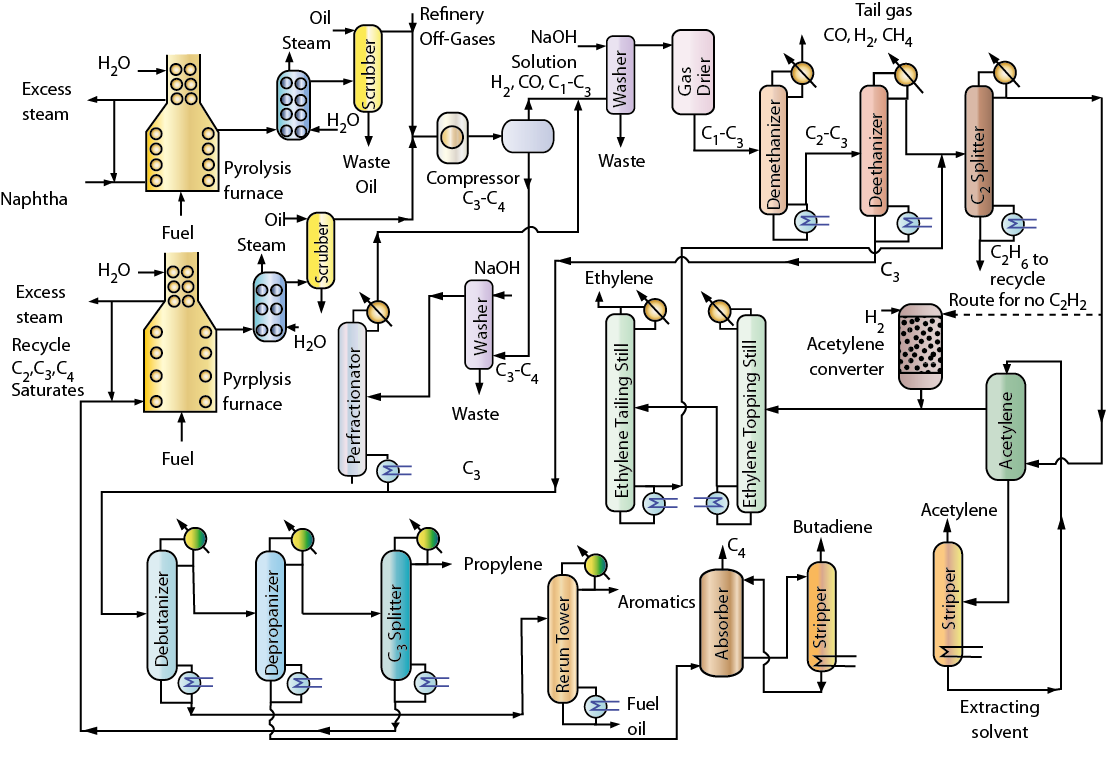 Figure 15.1 Flow sheet of Hydrocarbon Steam Cracking for Petrochemicals