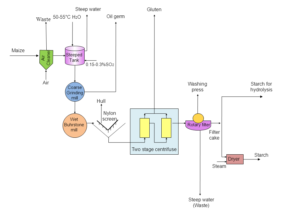- • At first, maize kernel containing 60-65% starch is introduced in air cleaner.