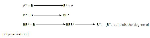 These reactions occur between the already formed free radicals and an inactive monomer. With low activation energy, there is more probability of reaction or collision between the species. As a result, rapid reactions occur to attain the given degree of polymerization.