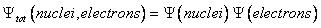 The Schrodinger equation cannot be solved exactly for any molecular systems. However, it is possible to solve the equation exactly for the simplest molecular species, H2+ , when the motion of the electrons is decoupled from the motion of the nuclei in accordance with the Born-Oppenheimer approximation. The masses of the nuclei are much greater than the masses of the electrons (the resting mass of the lightest nucleus, the proton, is 1836 times heavier than the resting mass of the electron). This means that the electrons can adjust almost instantaneously to any changes in the positions of the nuclei. The electronic wavefunction thus depends only on the positions of the nuclei and not on their momenta. Under the Born-Oppenheimer approximation the total wavefunction for the molecule can be written in the following form: