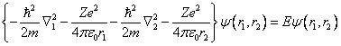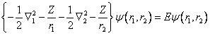 For the helium atom, our objective is to find a wavefunction that describes the behaviour of the electrons. As per Born-Oppenheimer approximation the wavefunction will be a function of the two electrons (which we shall label 1 and 2 with positions in space r2and r2). For polyelectronic systems any solution we find can only ever be an approximation to the true solution. There are a number of ways in which approximate solutions to the Schrodinger equation can be found. One approach is to find a simpler but related problem that can be more easily solved and then consider how the differences between the two problems change the Hamiltonian and thereby affect the solutions. This is called perturbation theory and is most appropriate when the differences between the real and simple problems are small. For example, a perturbation approach to tackling the helium atom might choose as the related system a 'pseudo atom', containing two electrons that interact with the nucleus but not with each other. Although this is a 'three-body' problem, the lack of any interaction between the electrons means that it can be solved exactly using the method of the separation of variables. The separation of variables