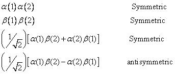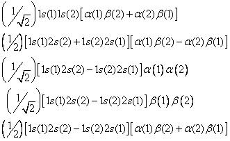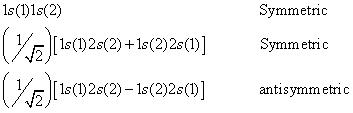 So after discussing the spatial part, we now move our attention to the effects of electron spin. The two electrons 1 and 2 have four spin states namely:.The indistinguishability criterion is also valid for the spin functions. So the possible spin wavefunctions are :