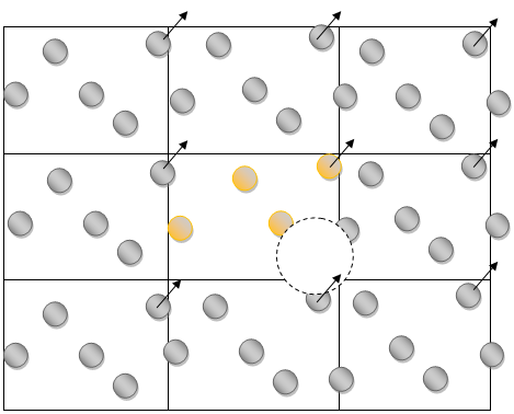 Figure 7: Depiction of the difference between the cutoff and the pair list distance.(The oval shaped indicates atoms)
