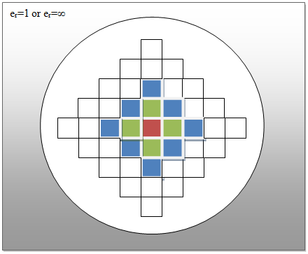 The method uses the fact that the particle interacts with all other particles in the simulation box and also with all of their images in an infinite array of periodic cells. The figure below illustrates the construction of array of simulation cells where the cell array is considered to be spherical.
