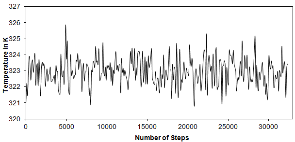 Figure 4: Time Dependence of instantaneous temperature T = 323.15 K