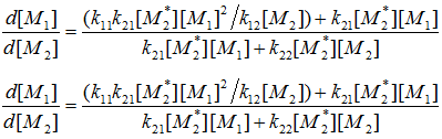 M1& M2 are two types of repeat units and M1* & M2* are the respective free radicals.