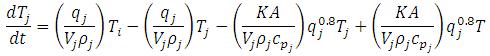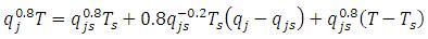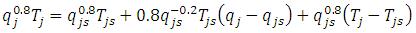 The nonlinear terms of the above equations are qj0.8T and qj0.8Tj . They are linearized in the following manner,