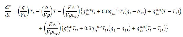 Where, A = heat transfer area (tank wall area) between liquid and coolant. Using U = Kqj0.8 eq.(3) takes the form,