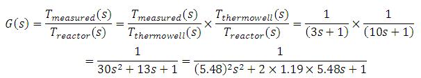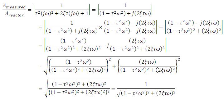 Hence, the measured temperature behaves as a second order overdamped process with τ = 5.48 and ξ = 1.19 to any changes in the actual reactor temperature. The frequency response analysis shows that any sinusoidal input acting on the second order over damped process will result in sinusoidal output