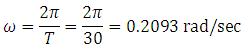 The frequency of the perturbing sinusoidal signal (reactor temperature) is calculated from the observed period of oscillation 30 sec.
