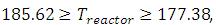 Hence, , which means that the actual temperature of the reactor oscillates around a mean temperature 181.5°C with an amplitude ±4.12°C. In other words, the actual reactor temperature lies in the range