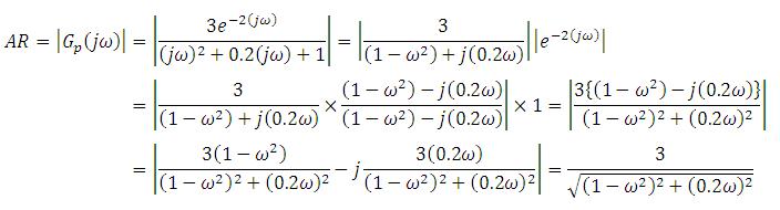 The amplitude ratio and the phase lag for of the process transfer function GP can be expressed as the following,