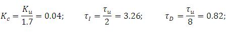 According to Ziegler-Nichol's tuning technique, a PID controller for the above condition will have the following parameters: