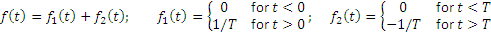 Pulse function : See Fig. III.1(c) for the schematic of an unit pulse function. The area under the pulse is 1. The duration of pulse is T and hence it achieves maximum intensity of