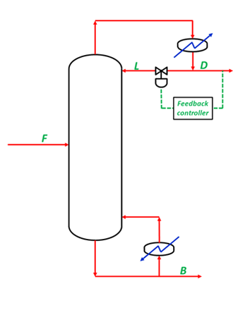 Consider the distillation column shown in Fig (V.1) The control objective is to keep the distillate concentration at a desired set point despite any changes in the inlet feed stream.