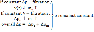 upstream-pressure of filter–media Define, = property of cake Pressure–drop through filter medium hydraulic resistance of filter medium