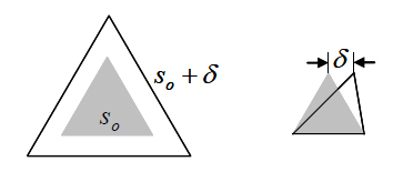 A similar analysis yields also the expressions for shear modulus. Suppose the network is sheared so that the vertex of a triangle at a particular layer is displaced to the right, say by a distance resulting in increase in its left arm by a distance and shortening of the length of its right arm by a distance . Since the bottom arm remains undeformed the total potential energy is written as