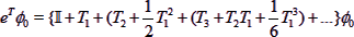The first term ( ) in the above expression generates the HF function ( ) while all the singly excited (w.r.t. ) configurations are produced by the action of on . The group of terms generated by include all connected double excitations ( ) and also all disconnected double excitation ( ). Similarly, the group of terms generated by represent all triply excited states which include the conventional or direct triples ( ) or product triples ( or ) and, so on for quadruply excited configurations. Following the CC recipe, the Schrodinger equation for the stationary states of H can be written in the form |