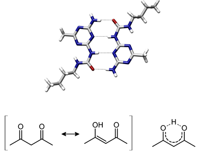 H-bond in small organic molecules: An example of intermolecular hydrogen bonding in a self-assembled dimer complex of a Donor-Acceptor molecules.