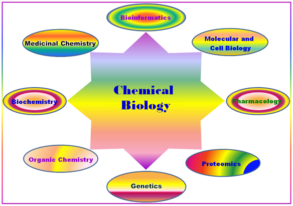 - Thus, Chemical Biology-related research is strongly interdisciplinary and contains elements from many scientific disciplines such as Medicinal chemistry, Molecular biology, Pharmacology, Biophysical chemistry, Biochemistry, Organic chemistry, Structural chemistry, Bioinformatics, Proteomics, Genetics and more (Figure 2.1 and 2.2).
