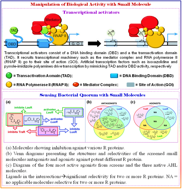 Due to the fundamental importance of transcriptional regulation in biological systems, small-molecule mimetic that promote exogenous control over transcription represent extremely valuable tools. Such study was reported by Jin Zhang et al., andHelen E. Blackwell et al.