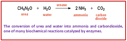 - Urease is an enzyme that catalyzes the conversion of urea to ammonia and carbon dioxide. Certain bacteria that convert urea to ammonia as part of the nitrogen cycle contain this enzyme.