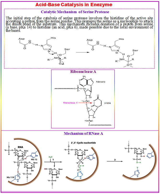 - Many reaction mechanisms involving acid/base catalysis assume a substantially altered pKa. This alteration of pKa is possible through the local environment of the residue.